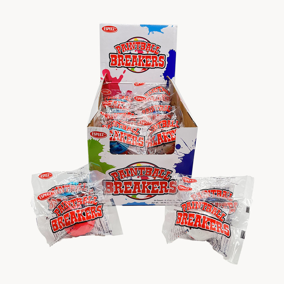 NEW ITEM! Get ready for a flavor explosion! Paintball breakers are ready to unleash a rainbow of fruity flavors. With nine layers of deliciousness and eye-popping colors, these pops are sure to be a hit with kids and adults alike. Enjoy 1.75 inches of of splattered goodness!